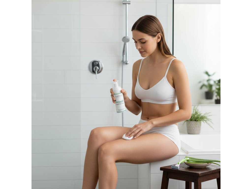 Naneste přiměřené množství pěny na pokožku intimních partií při mytí nebo holení. Jemně rozetřete a důkladně opláchněte čistou vodou.