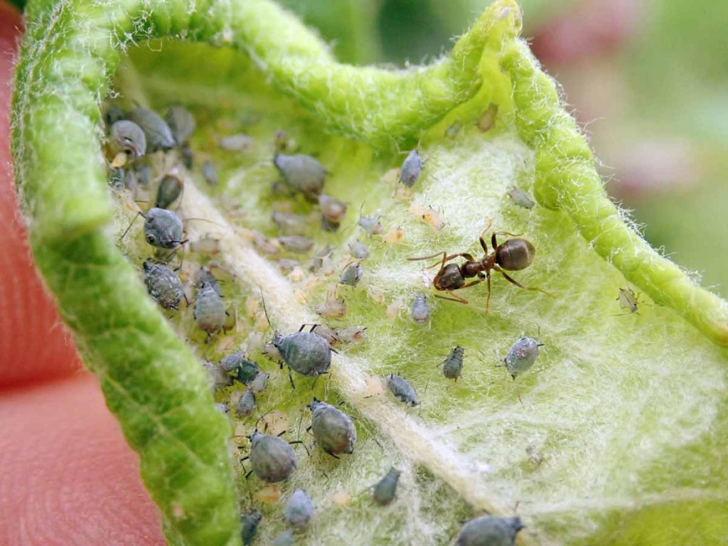 • jadroviny (obaleč, mšice, vlnatka krvavá)