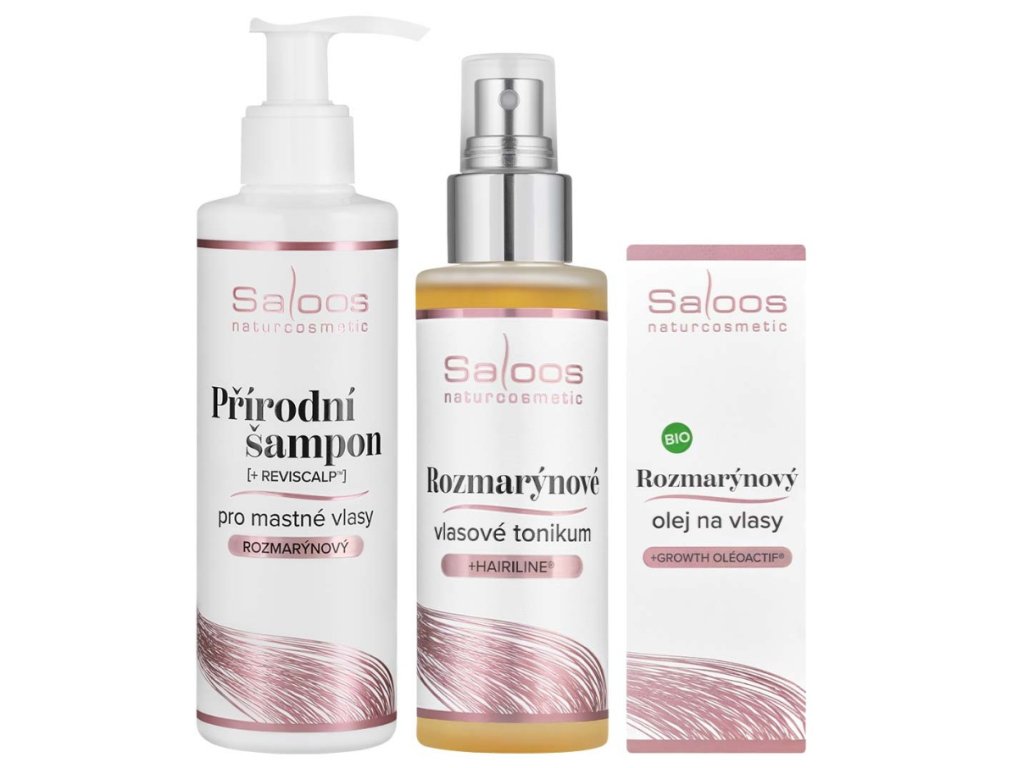 Chceš mít krásné, husté a silné vlasy? Vyzkoušej výhodnou sadu tří přírodních produktů s rozmarýnou. Šampon na mastné vlasy, Rozmarýnové vlasové tonikum a Bio Rozmarýnový olej na vlasy jsou ideální pro podporu růstu a snížení vypadávání.